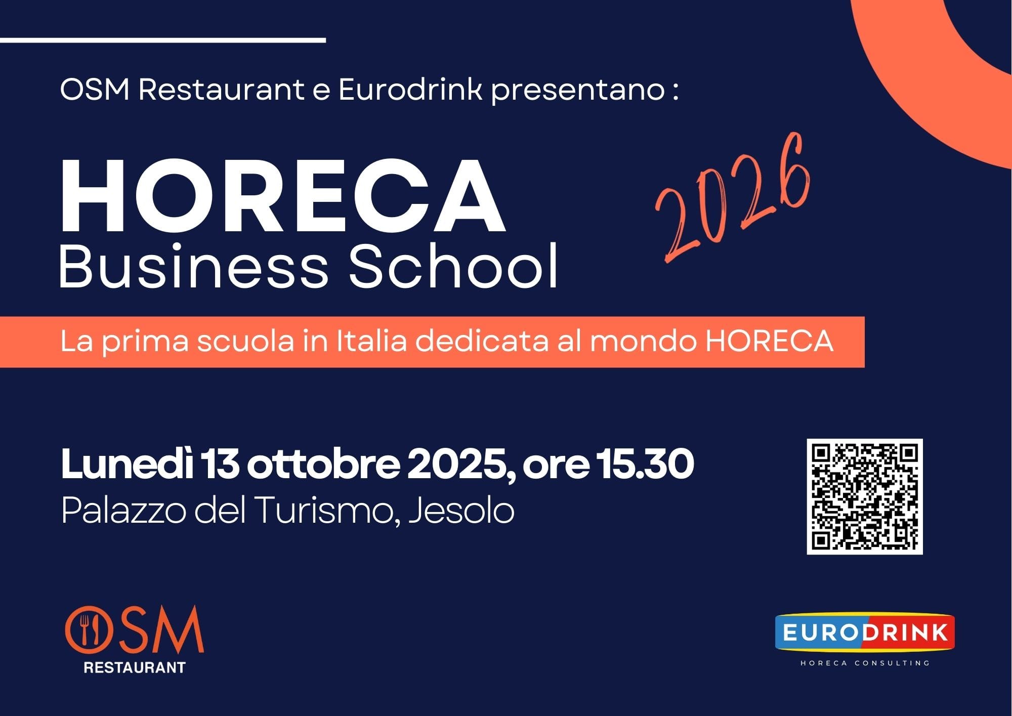 Durante l’evento verrà presentato ufficialmente il progetto HORECA Business School 2026: un percorso unico in Italia che nasce dall’esperienza di OSM Restaurant e Eurodrink, punto di riferimento nel beverage e nei servizi per il settore Horeca.